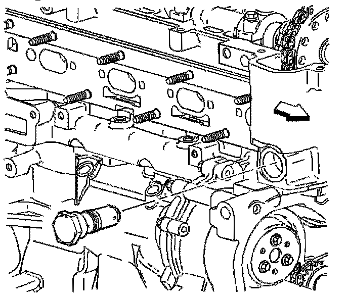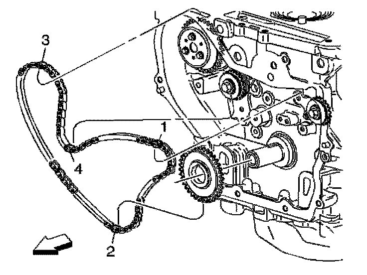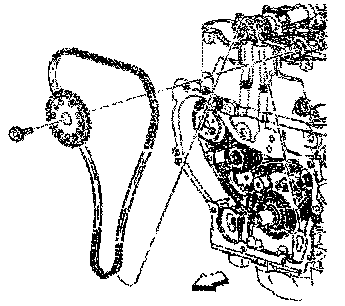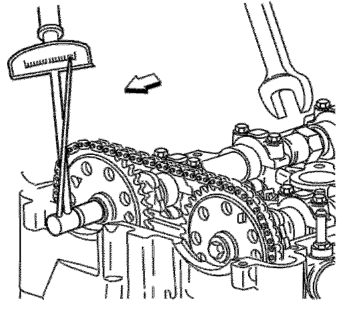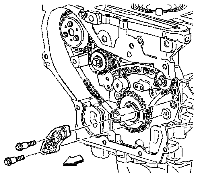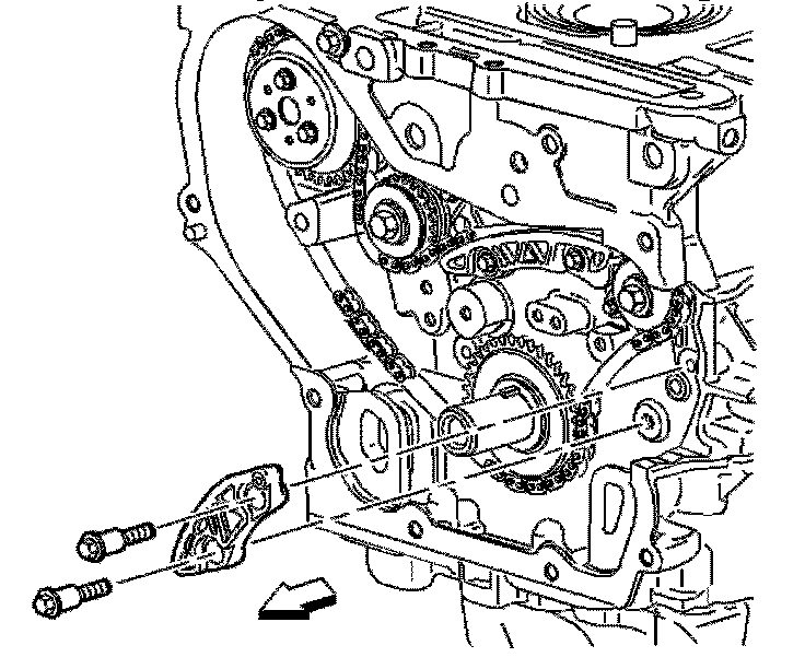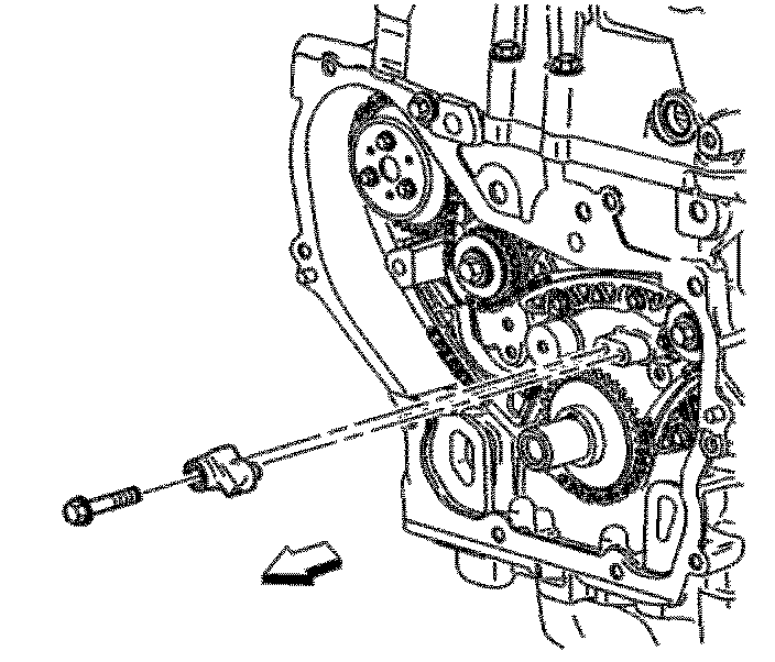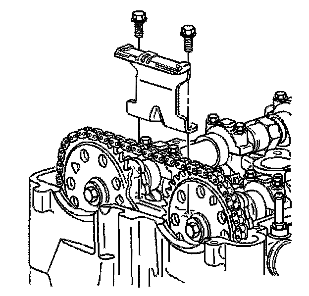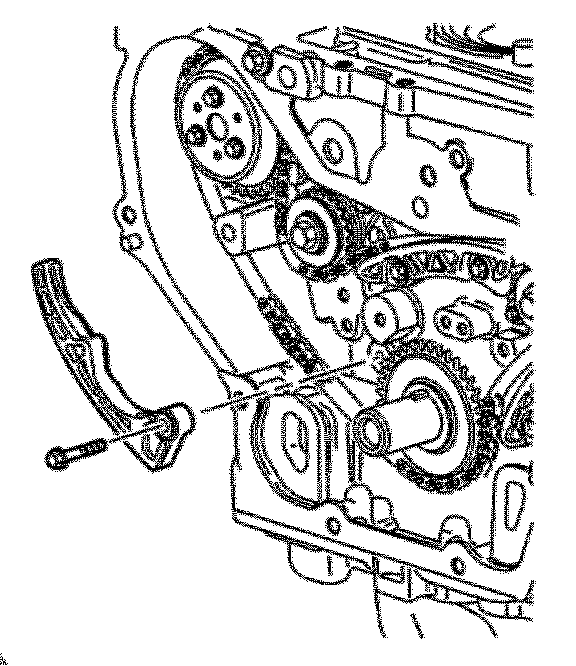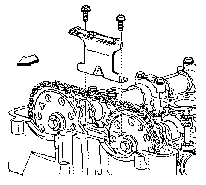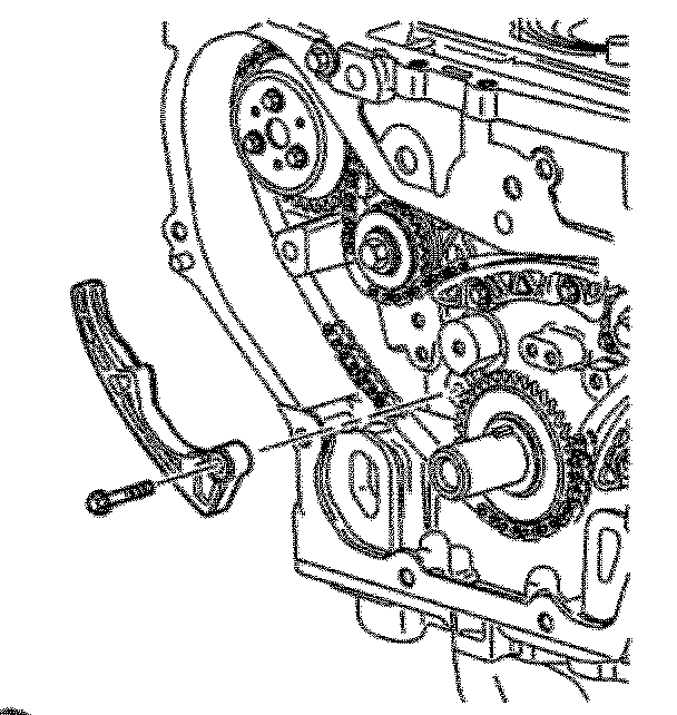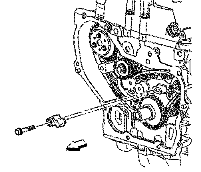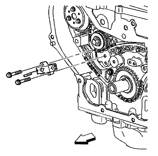 Important: The timing chain tensioner must be removed to unload chain tension before the timing chain is removed. If not removed, the timing chain will become cocked and it will be difficult to remove.