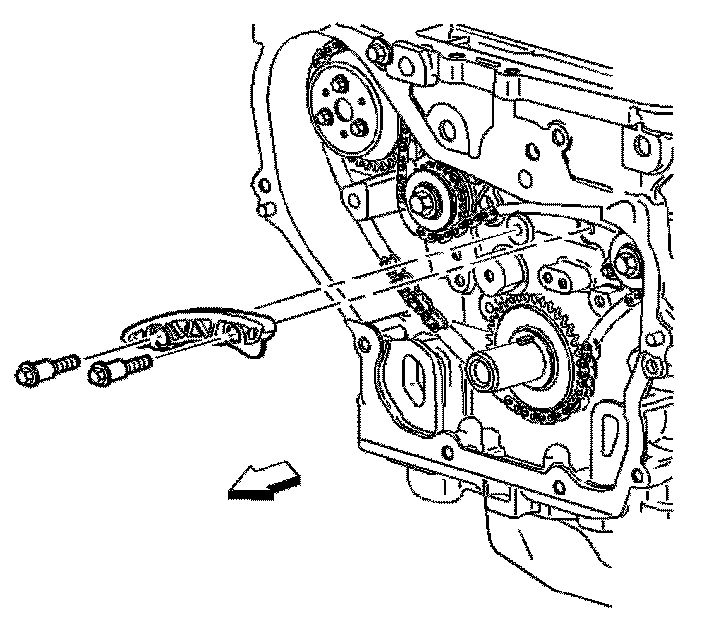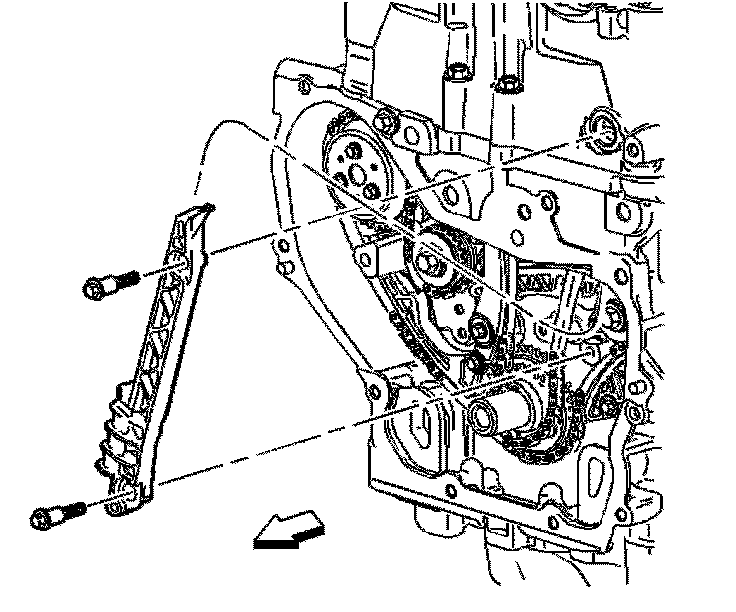 9. Remove the fixed timing chain guide.