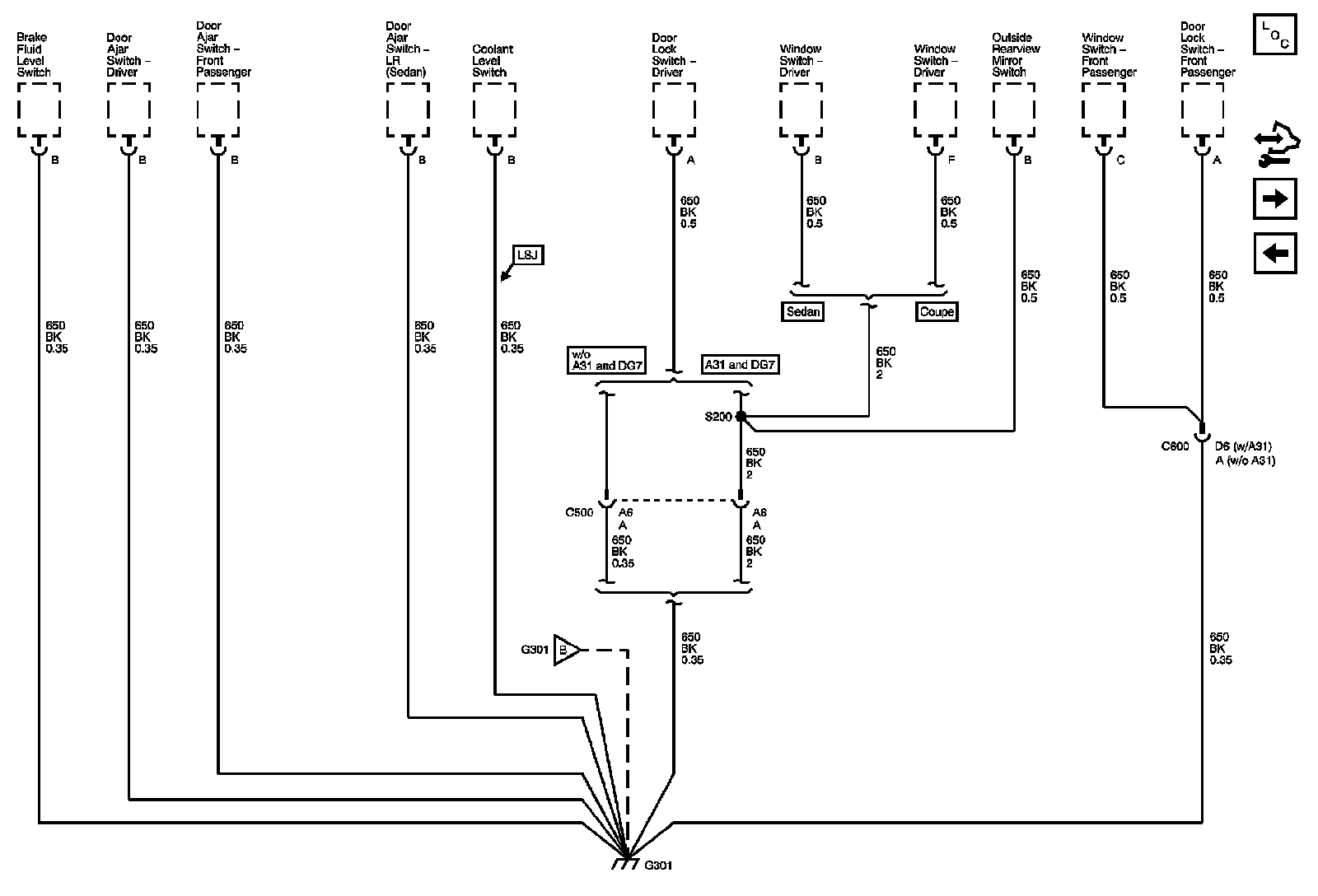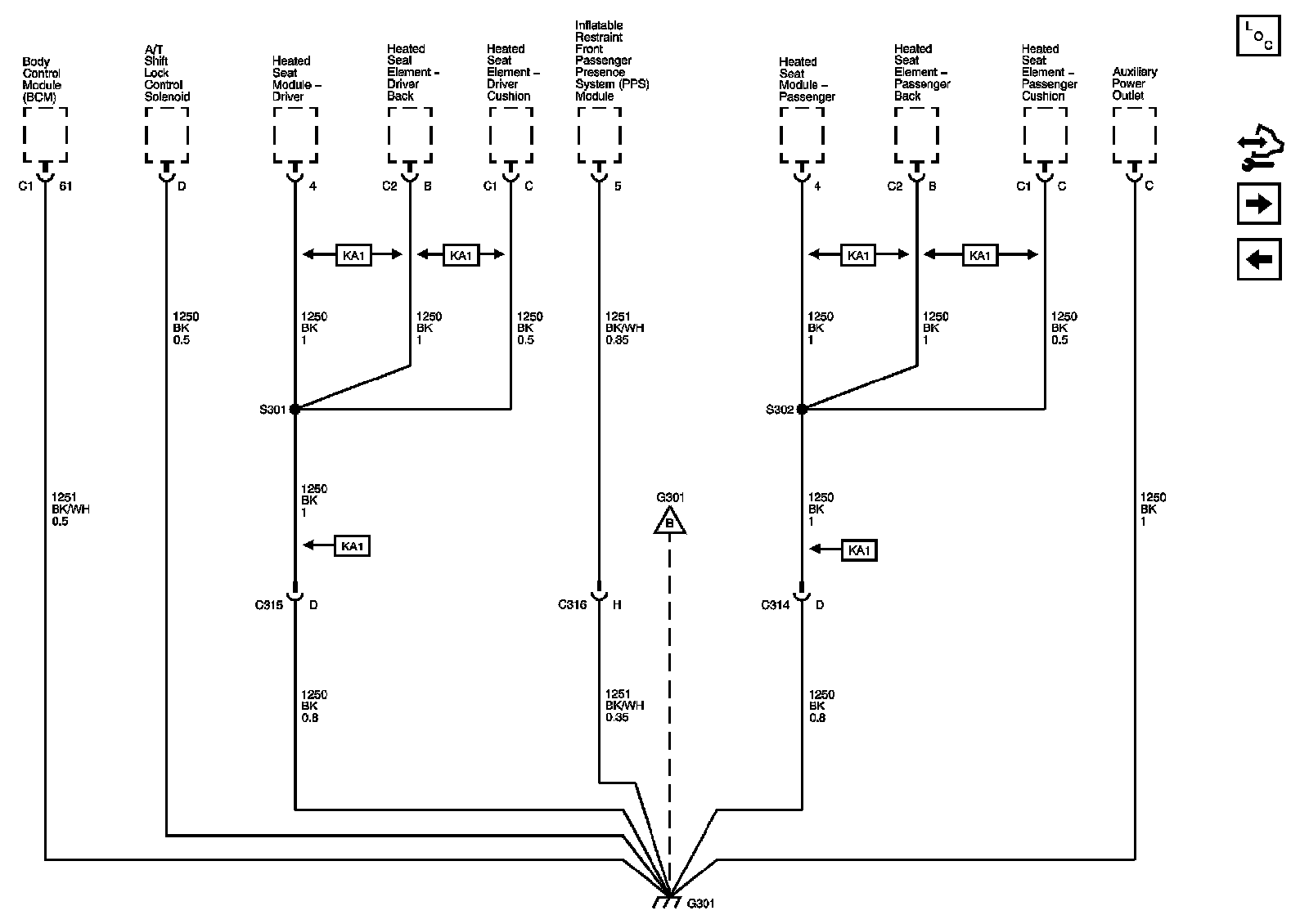 The locations for the Connectors, Grounds, Splices, and Grommets shown within these diagrams can be found via their numbers at Vehicle Locations.