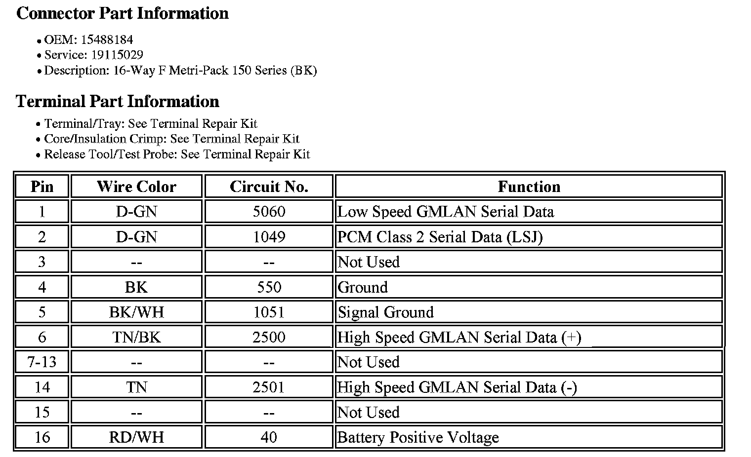 Data Link Connector: Diagrams