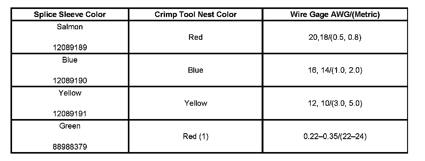 5. Select the proper duraseal splice sleeve (2) and the required crimp nest tool. Refer to the Crimp and Seal Splice Table.