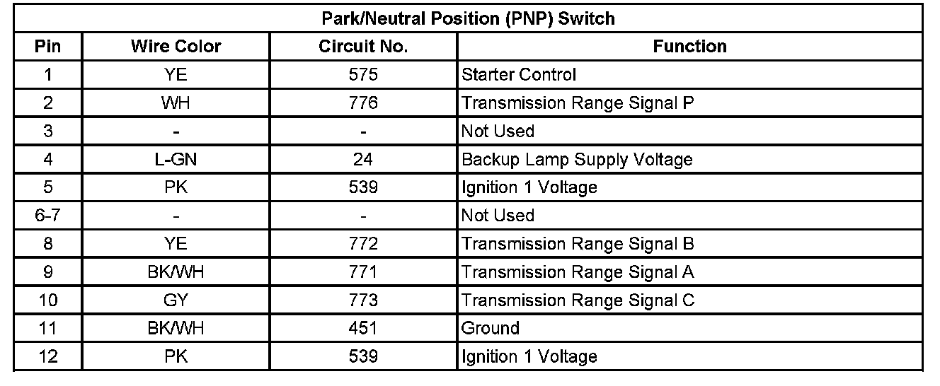 Transmission Position Sensor/Switch: Diagrams