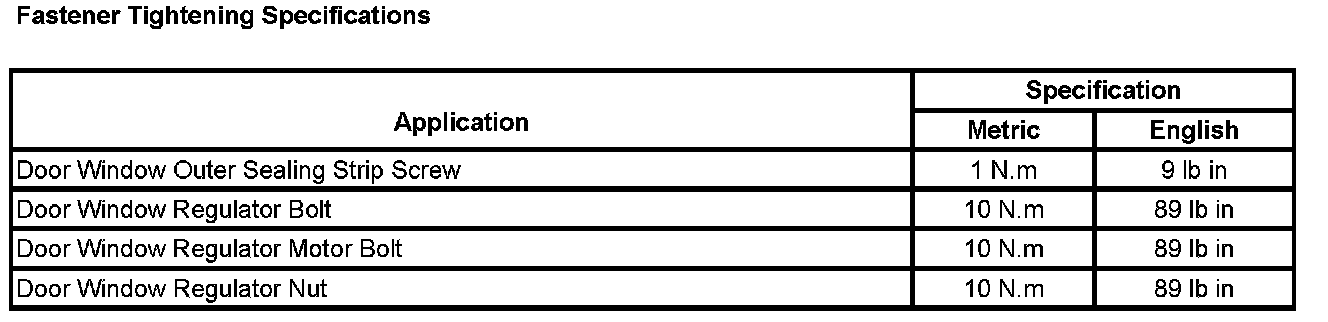 Fastener Tightening Specifications: