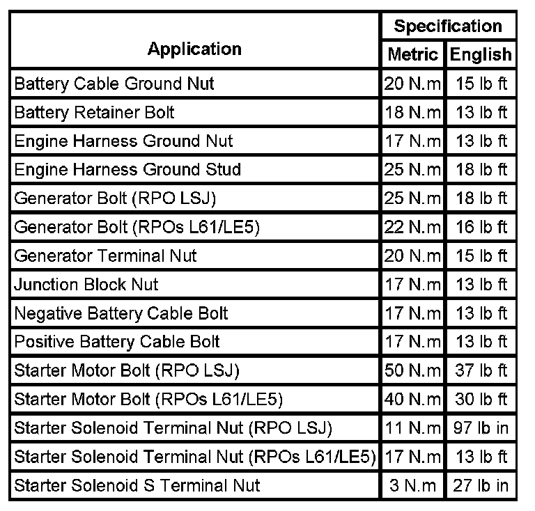 Starting and Charging: Specifications