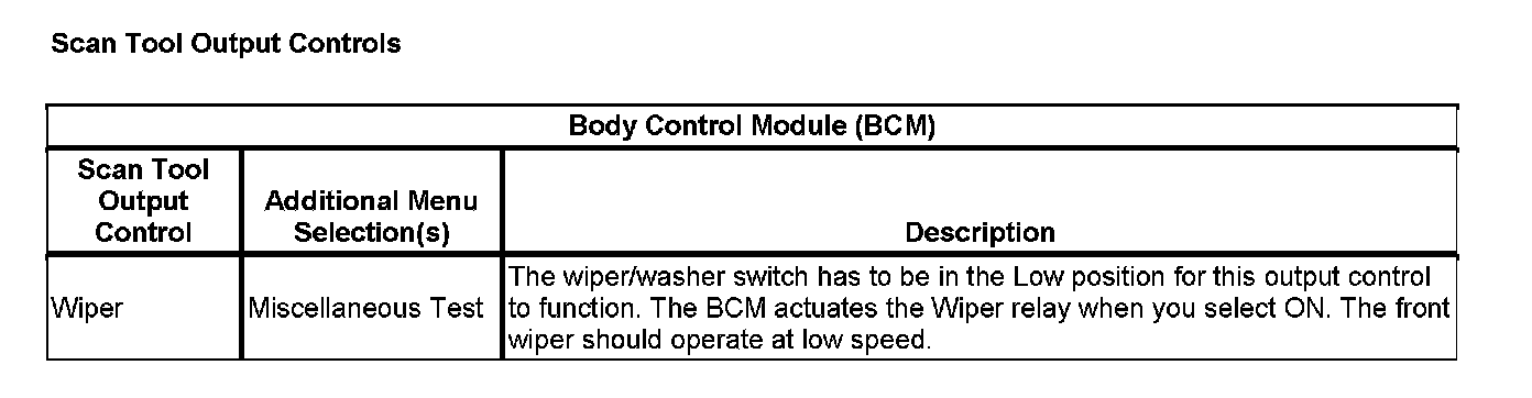 Scan Tool Output Controls