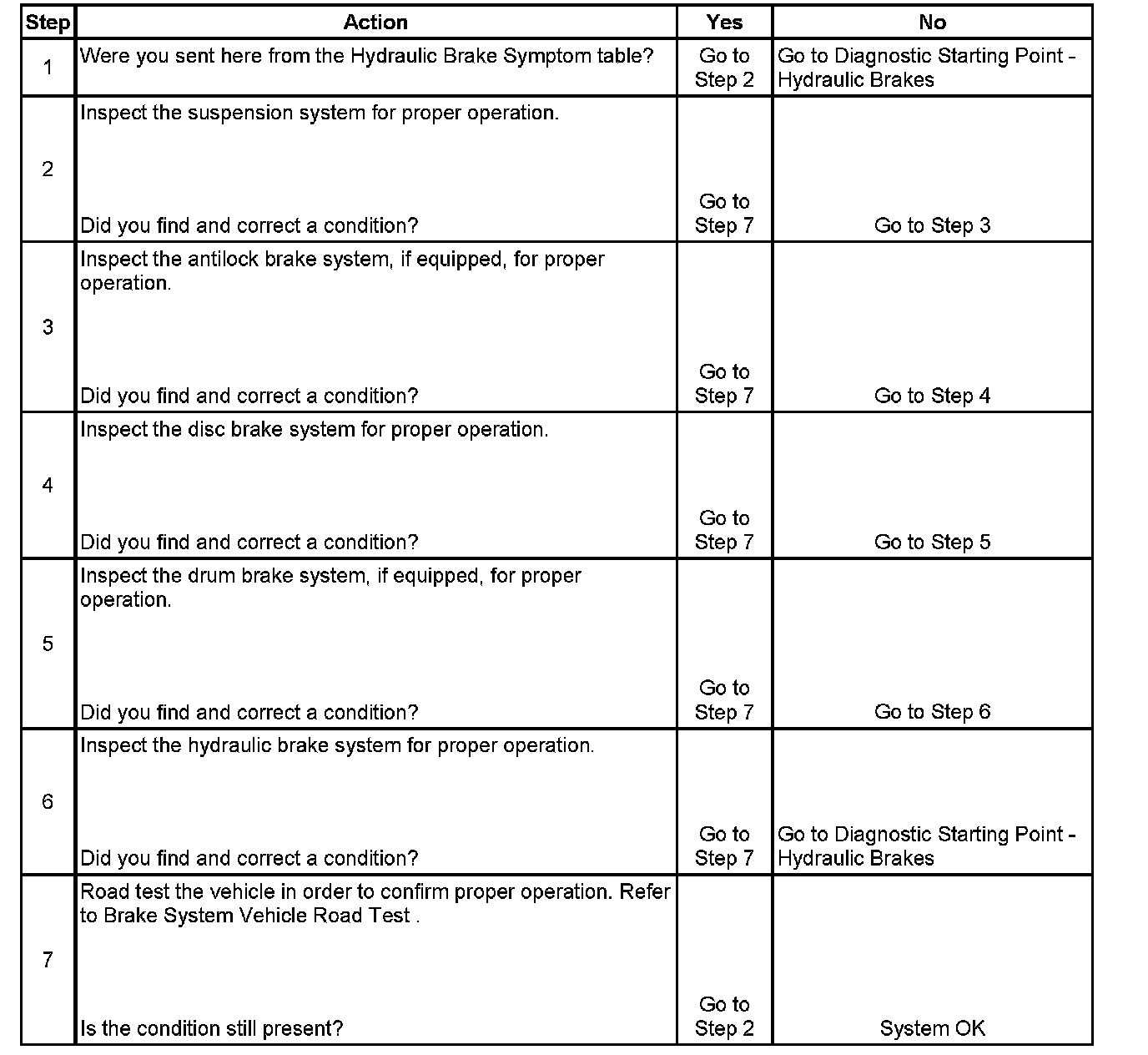 2. Suspension components that are not operating properly may cause a disturbance to the vehicle during application of the brake system.