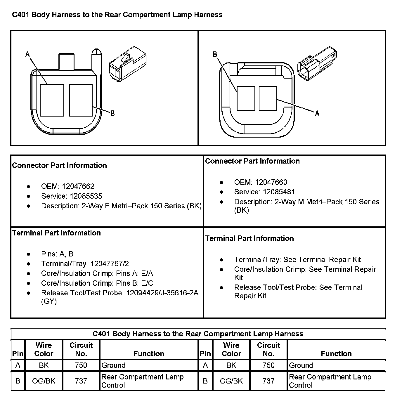 C401 Body Harness To The Rear Compartment Lamp Harness: