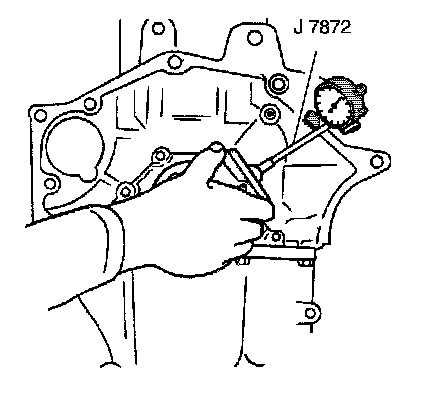 1. Temporarily install the crankshaft and upper bearings. Measure the crankshaft flange runout using the J 7872.