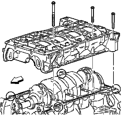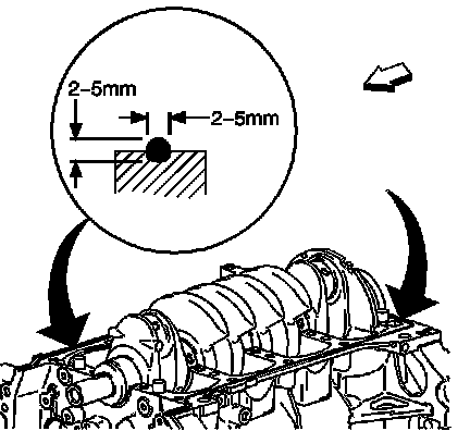 4. Apply sealer GM P/N 12378521 (Canadian P/N 88901148) to the surfaces of the engine block to bedplate mating surfaces.
