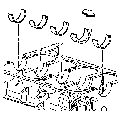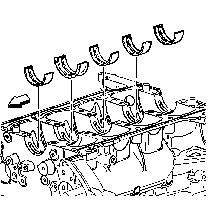 3. Install the lower bearing halves, without grooves, into the lower crankcase. Apply oil to bearing surfaces.