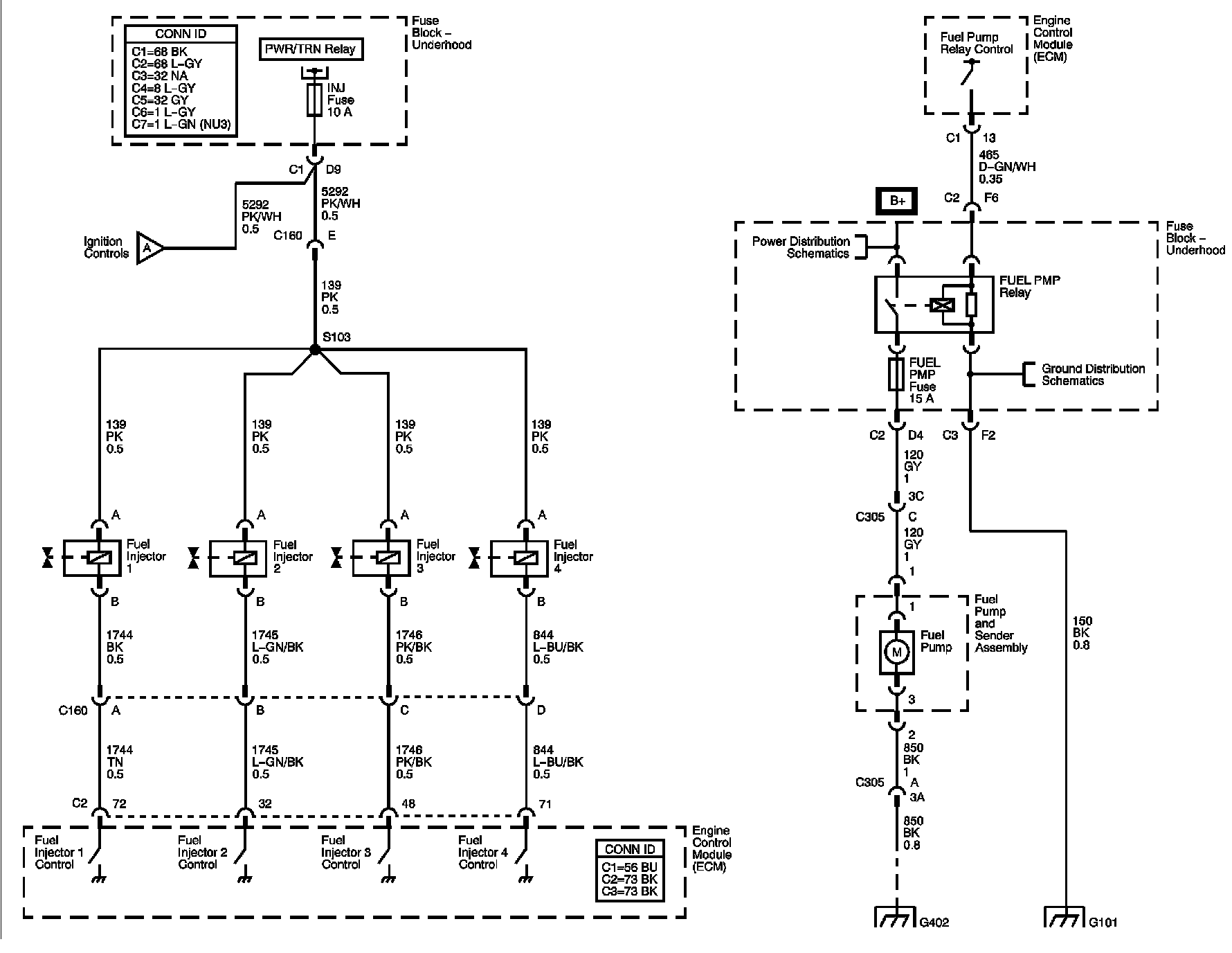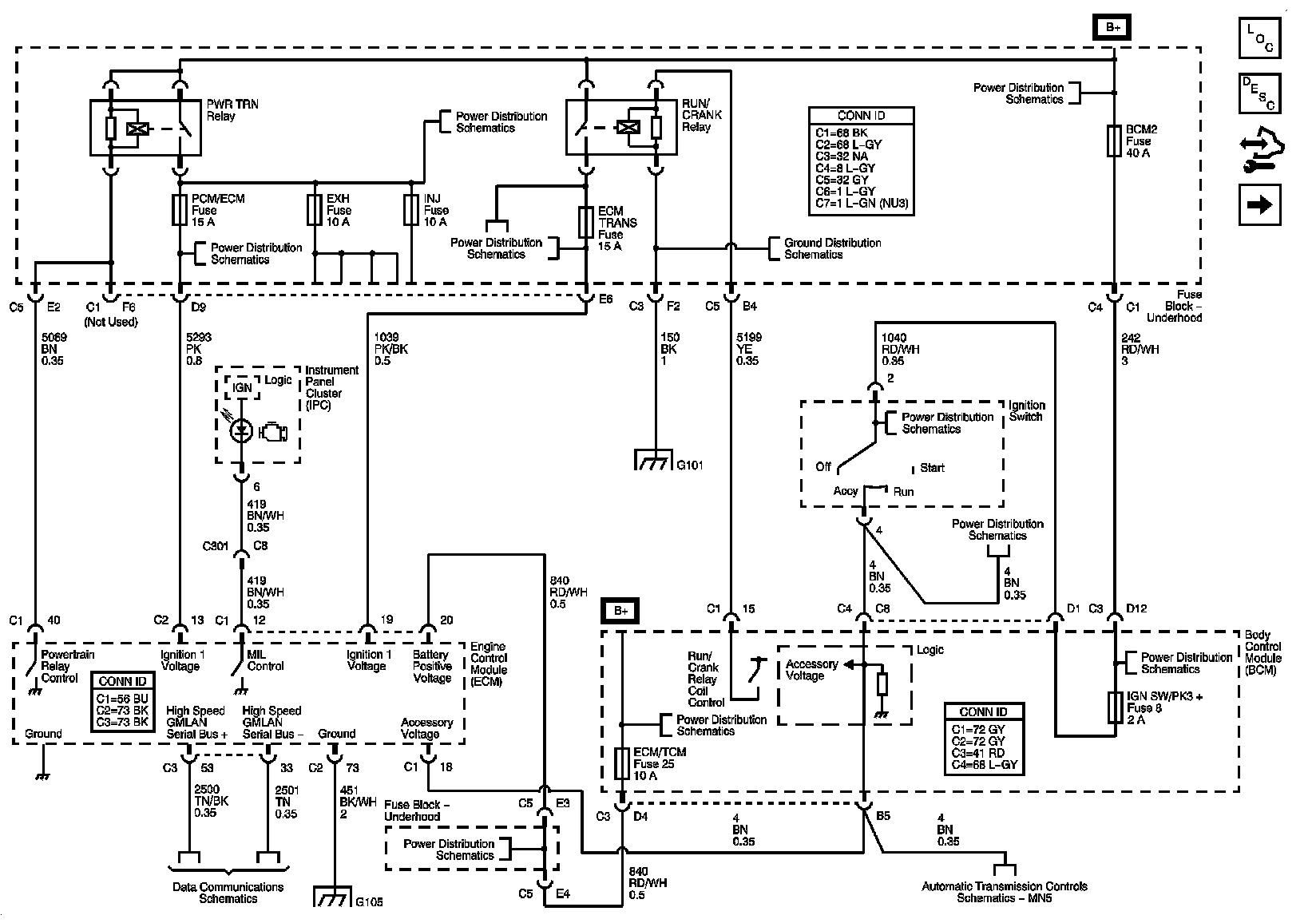 Locations: The locations for the Connectors, Grounds, Splices, and Grommets shown within these diagrams can be found via their numbers at Vehicle Locations. Locations