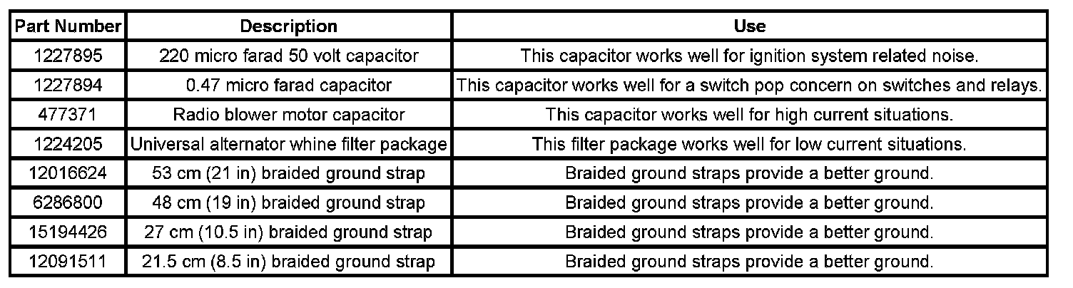 7. If the installation of this filter causes a delay when turning the radio ON or OFF, or other noticeable performance problems, remove the filter and install a 0.47 micro farad capacitor (P/N 1227894) to chassis ground.