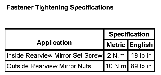 Fastening Tightening Specifications: