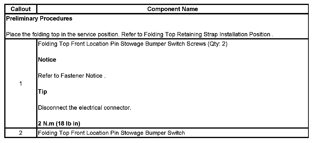 Folding Top Front Locating Pin Position Switch Replacement
