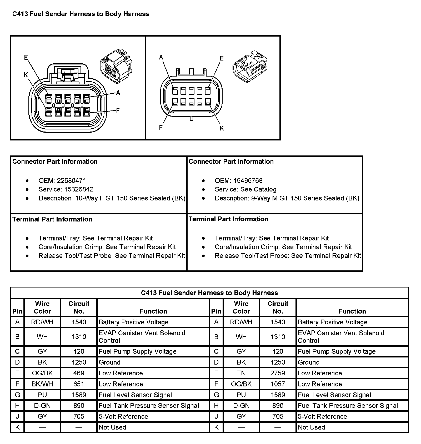 C413 Fuel Sender Harness To Body Harness (Pin A To K):