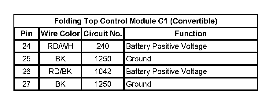 Folding Top Control Module C2 (Convertible) (Pin 27):