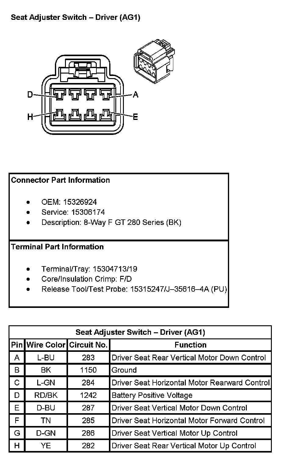 Seat Adjuster Switch - Driver (with RPO Code AG1):
