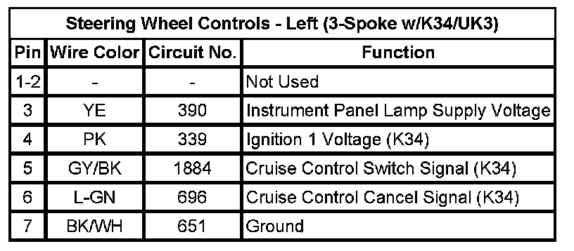 Steering Wheel Controls - Left (3-Spoke w/K34/UK3)