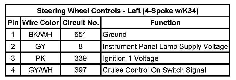 Steering Wheel Controls - Left (4-Spoke w/K34)