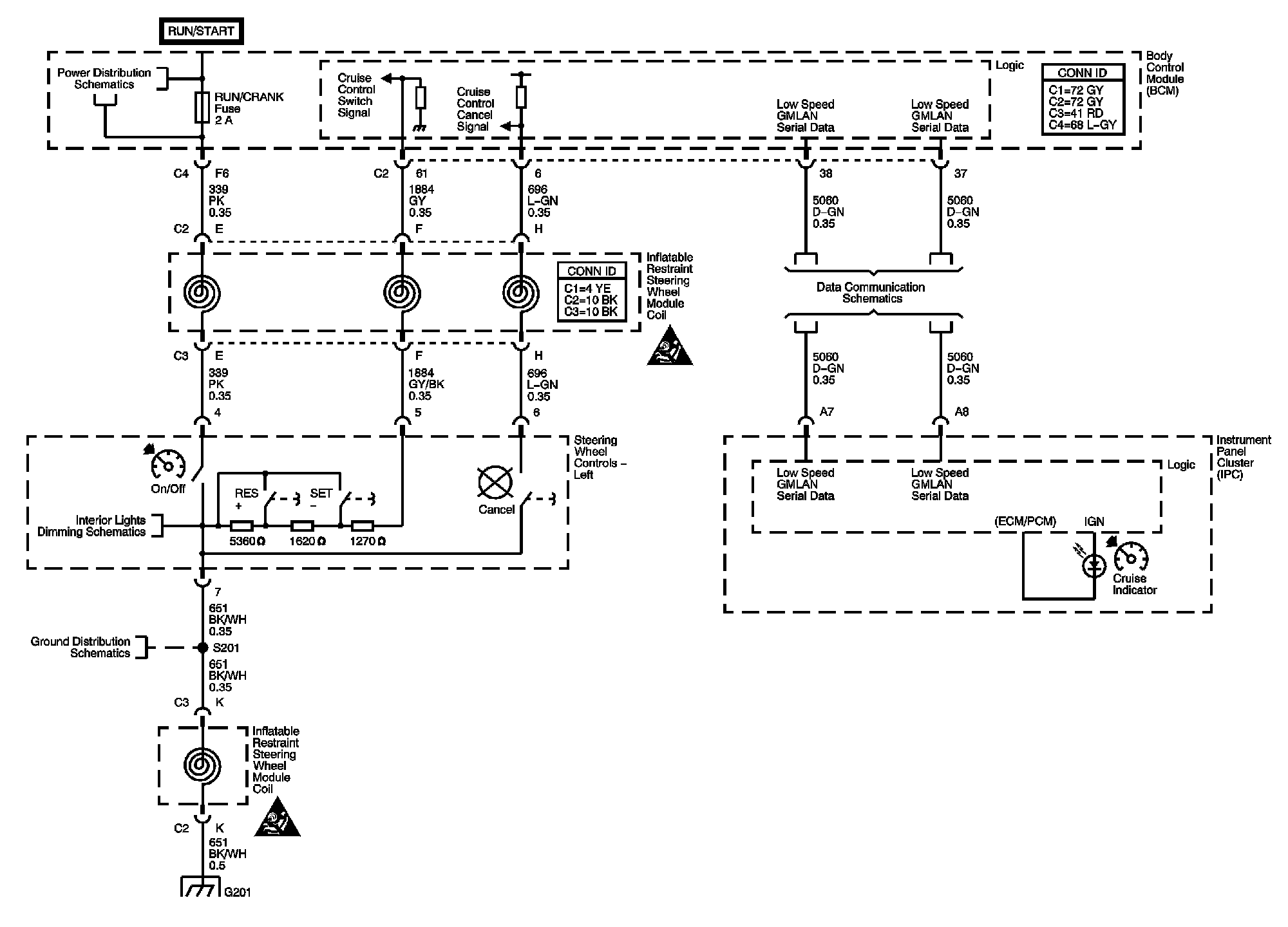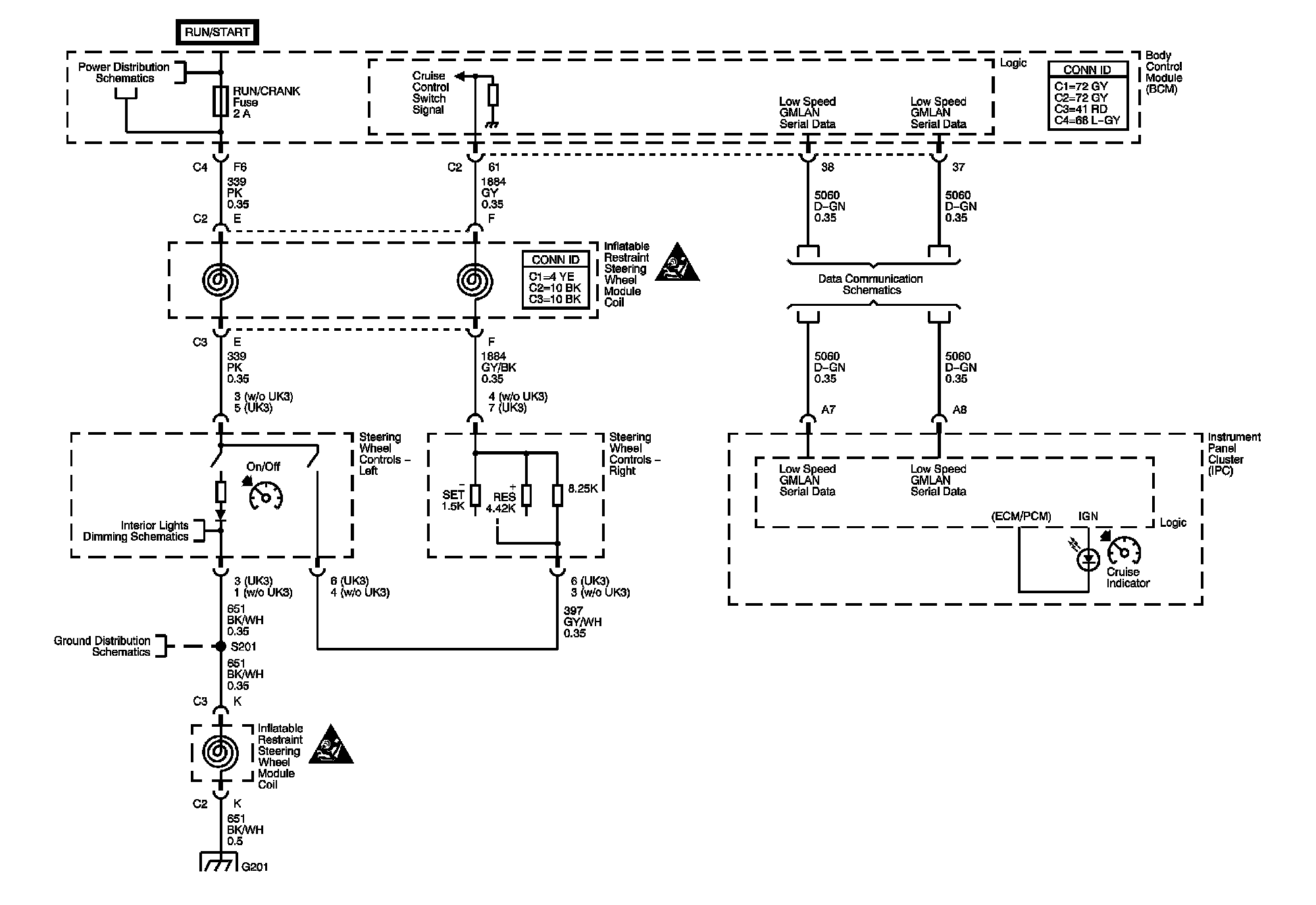 Locations: The locations for the Connectors, Grounds, Splices, and Grommets shown within these diagrams can be found via their numbers at Vehicle Locations. Locations