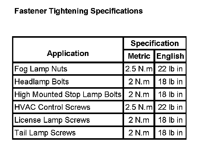 Fastener Tightening Specifications: