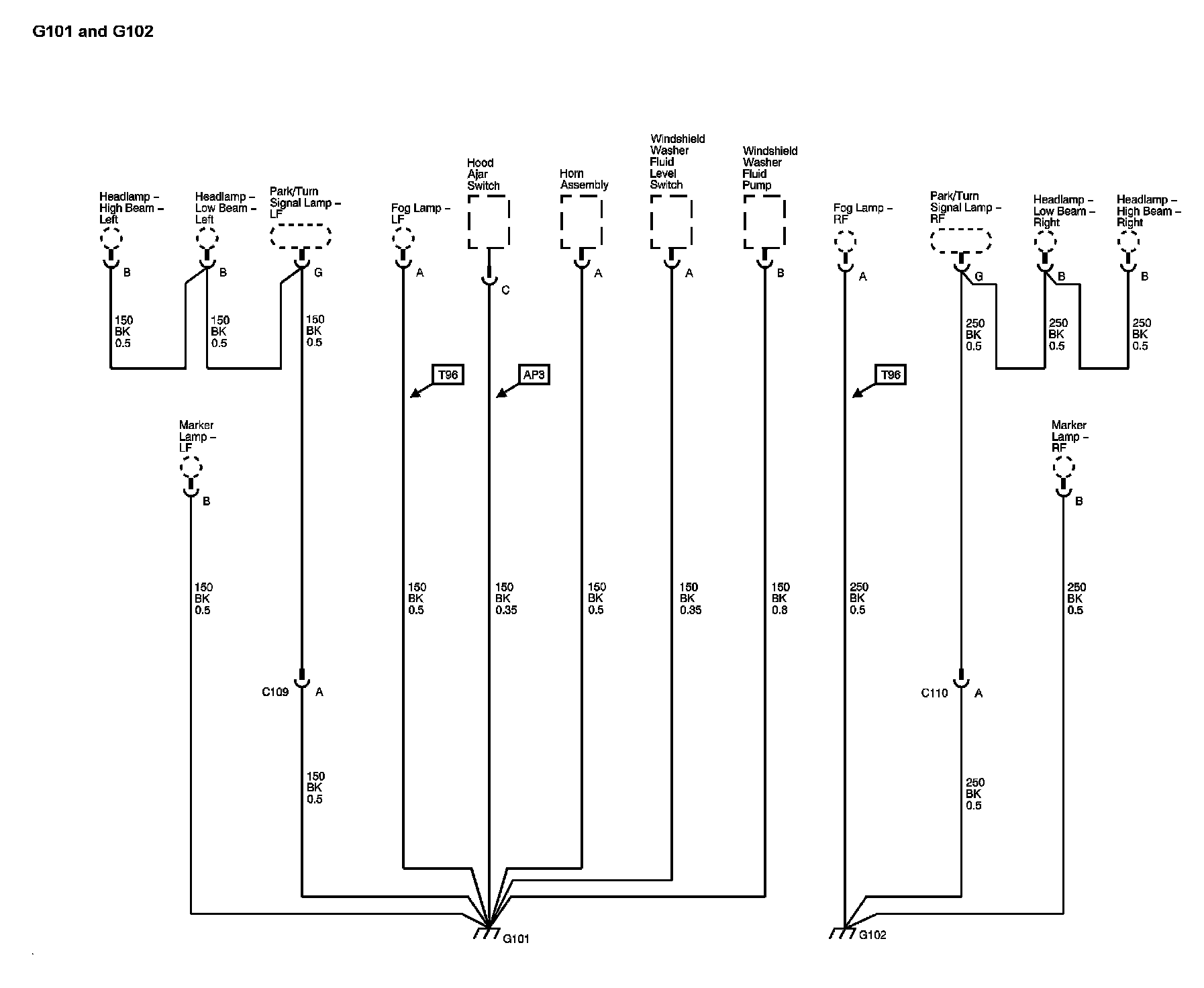 The locations for the Connectors, Grounds, Splices, and Grommets shown within these diagrams can be found via their numbers at Vehicle Locations.