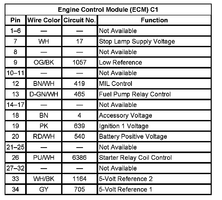Engine Control Module (ECM) C1 (Pin 1 To 34):