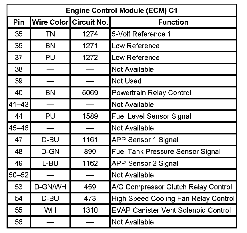 Engine Control Module (ECM) C1 (Pin 35 To 56):