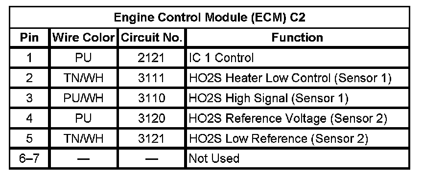 Engine Control Module (ECM) C2 (Pin 1 To 7):