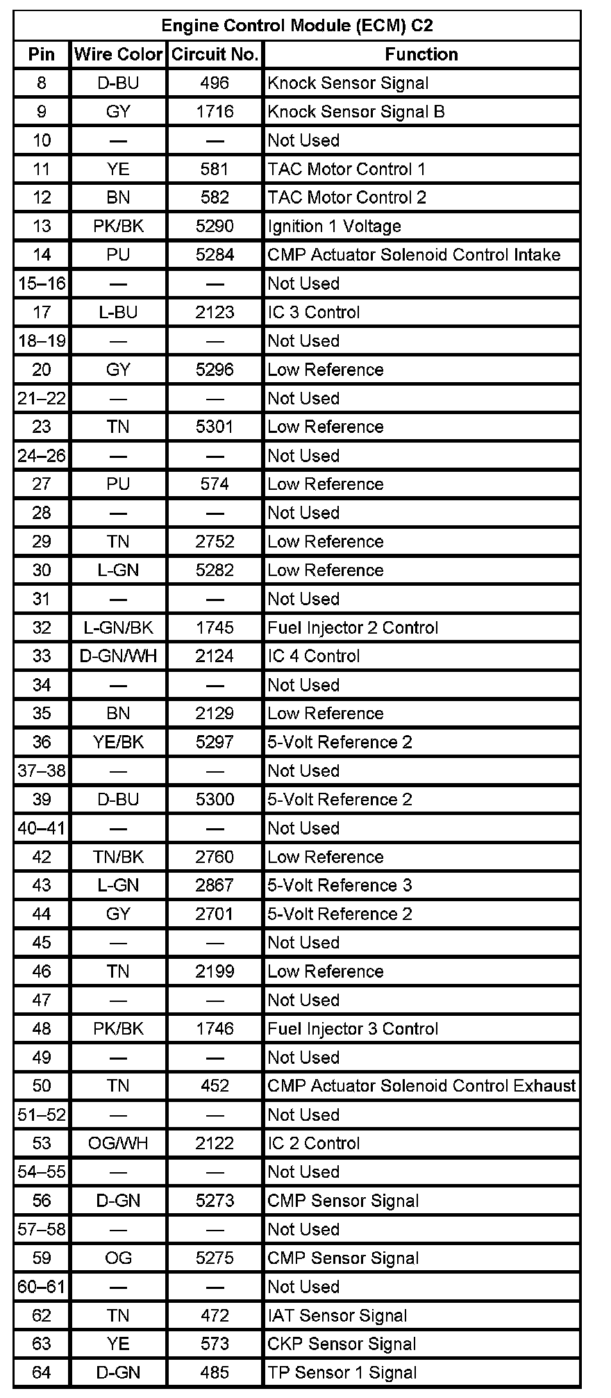 Engine Control Module (ECM) C2 (Pin 8 To 64):
