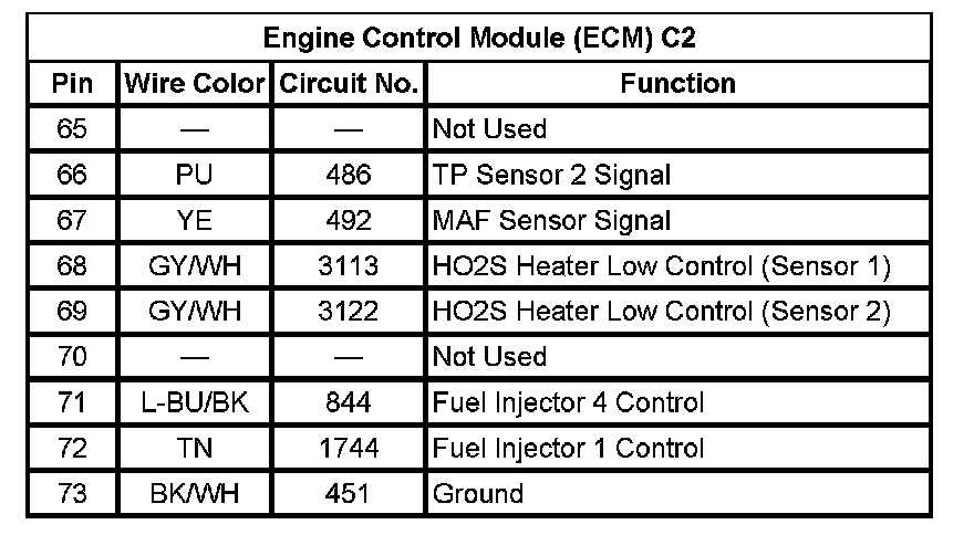 Engine Control Module (ECM) C2 (Pin 65 To 73):