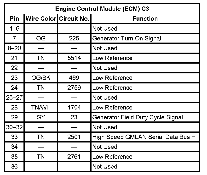 Engine Control Module (ECM) C3 (Pin 1 To 36):