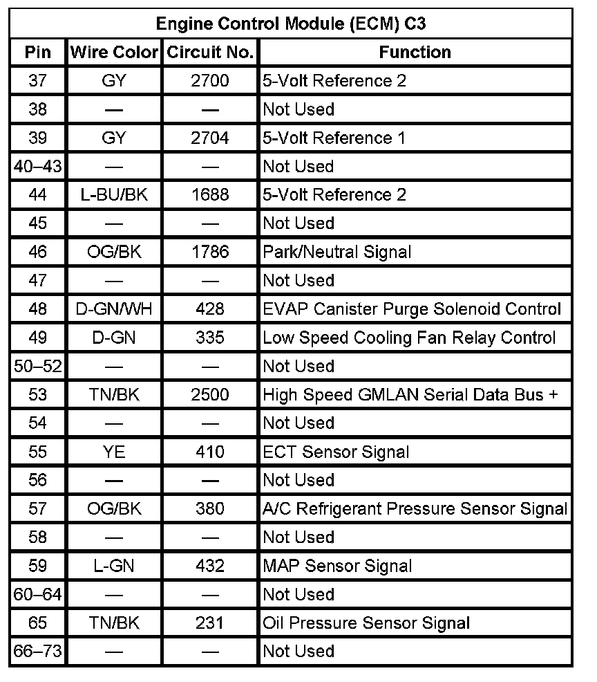 Engine Control Module (ECM) C3 (Pin 37 To 73):