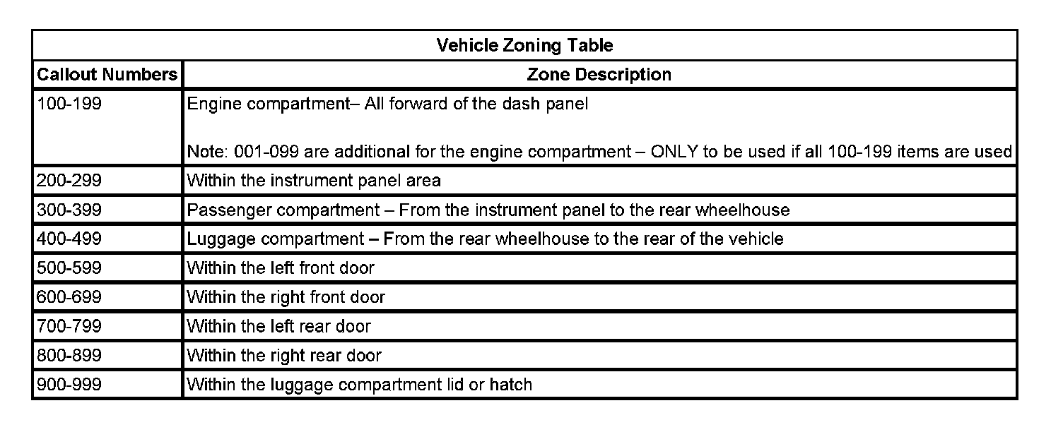 Vehicle Zoning Table: