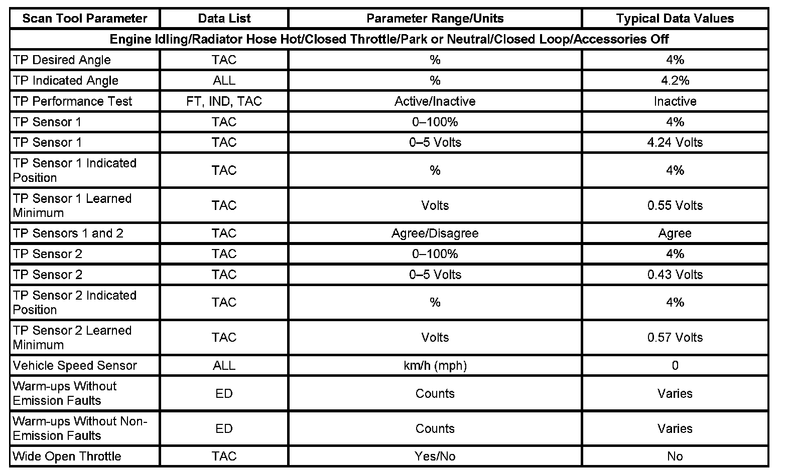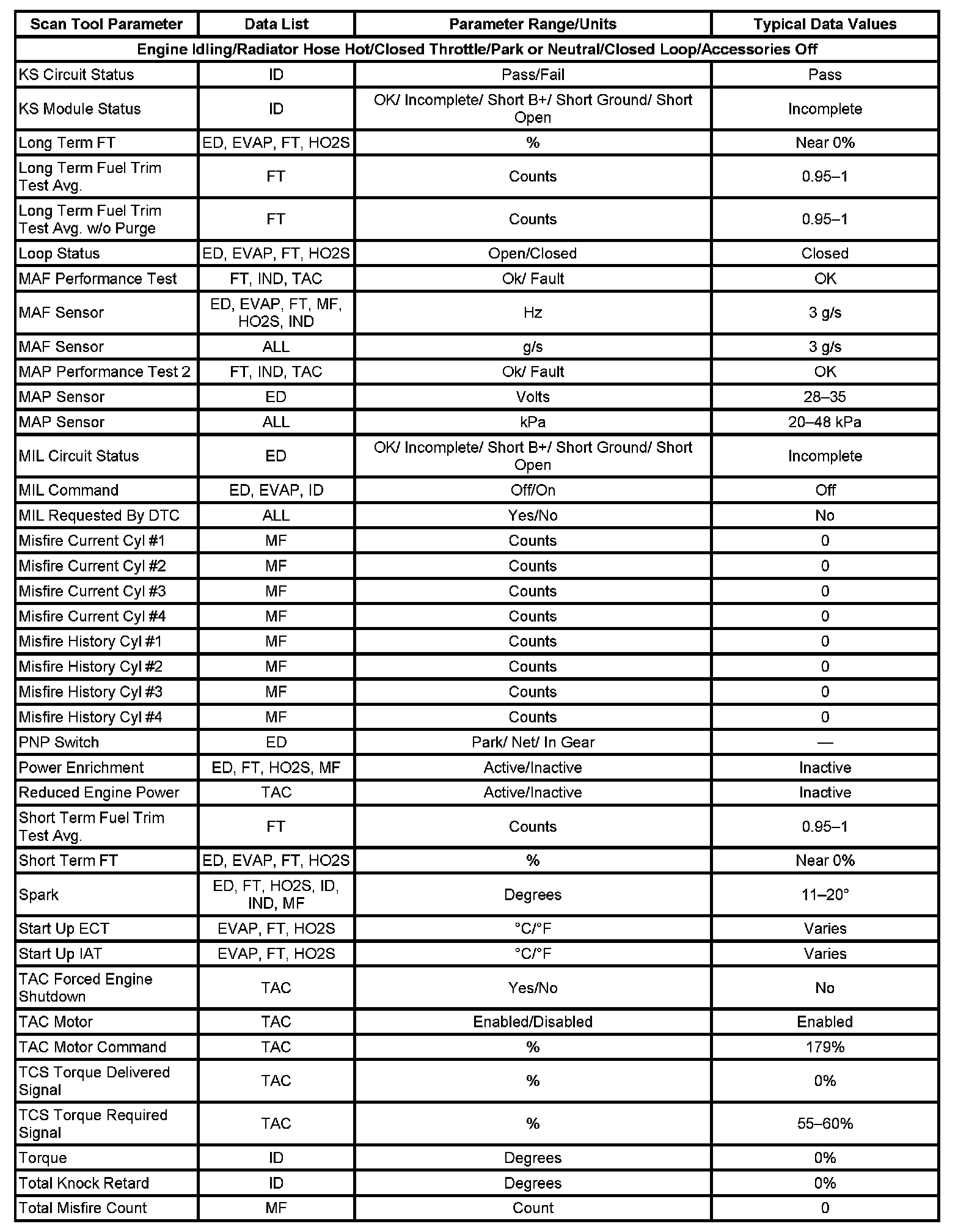 Only the parameters listed below are referenced in this service data for use in diagnosis. If all values are within the typical range described below, refer to Symptoms - Computers and Control Systems for diagnosis. - Symptoms - Engine Controls