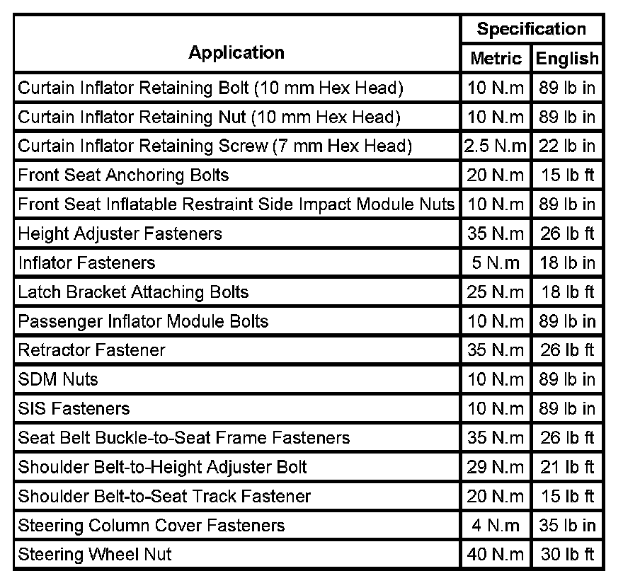 Fastener Tightening Specifications