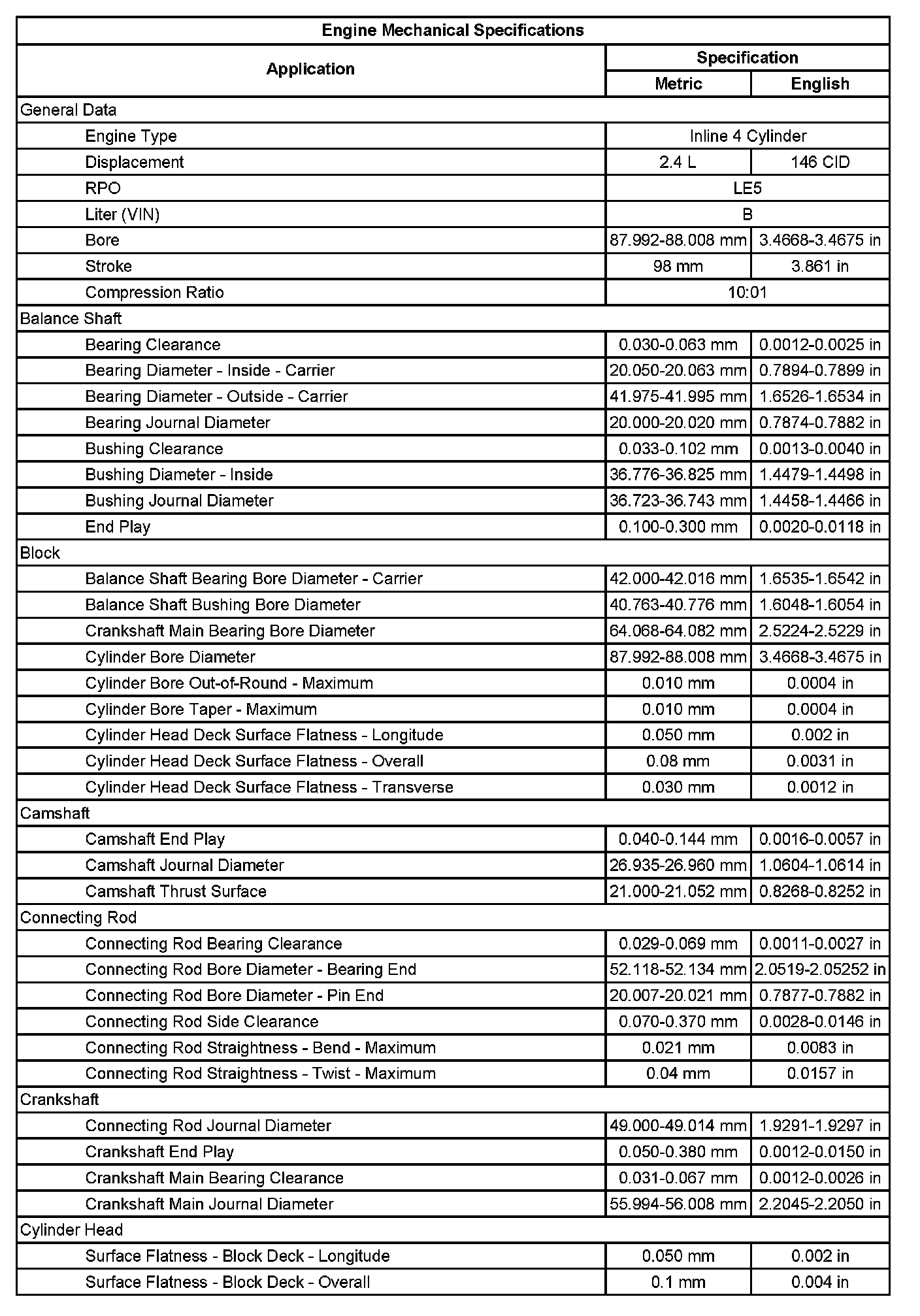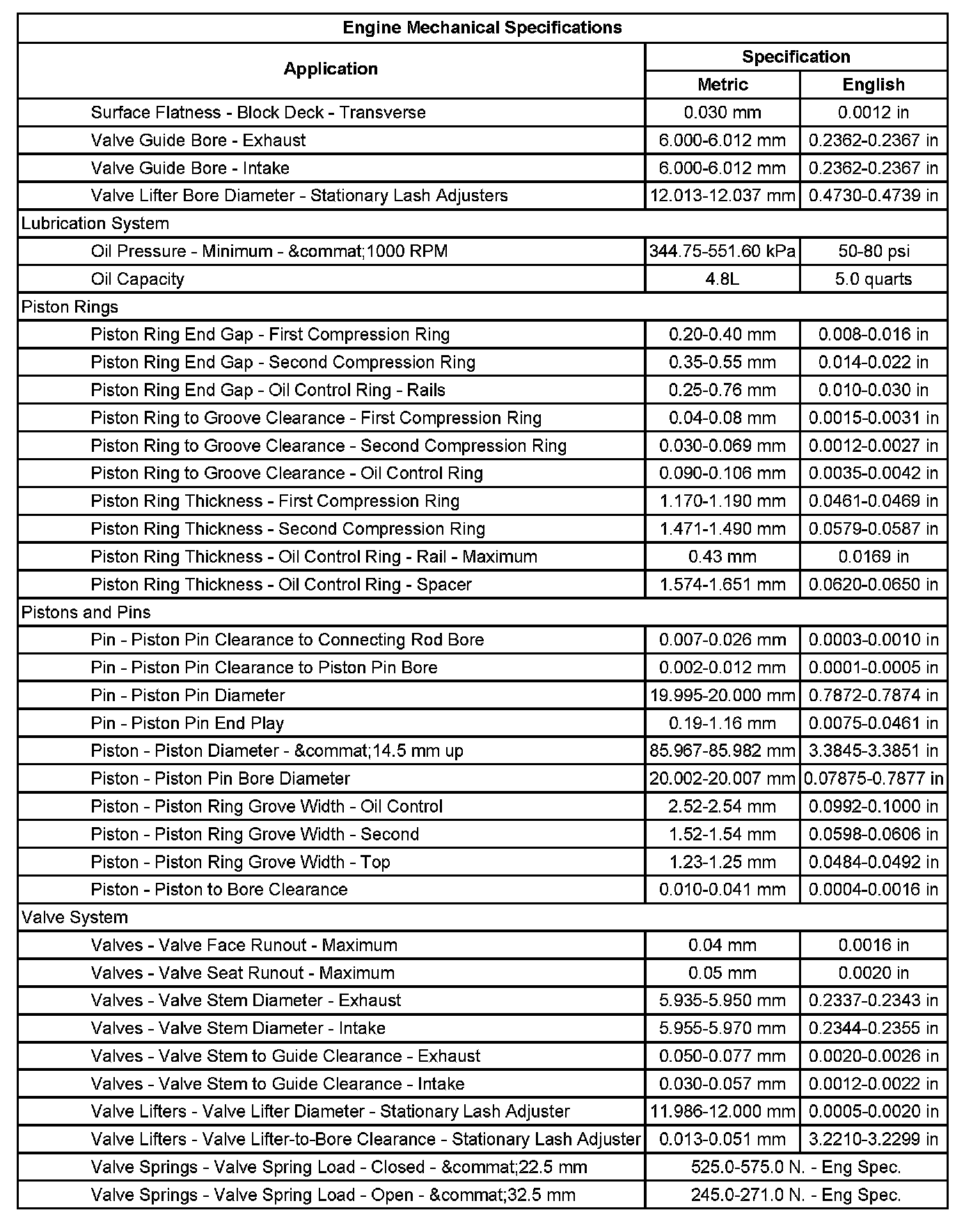 Engine Mechanical Specifications