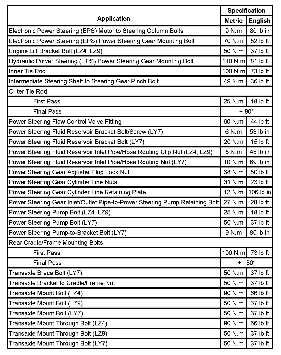Fastener Tightening Specifications: