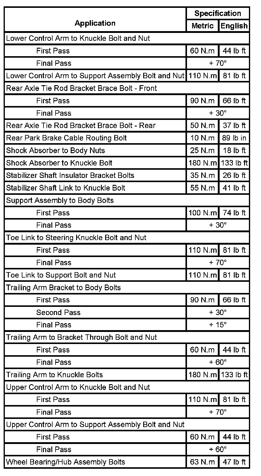 Fastener Tightening Specifications: