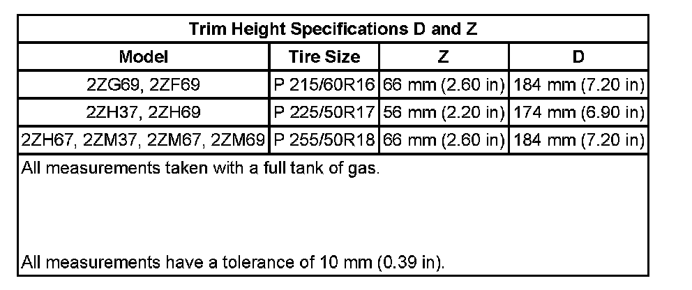 Trim Height Specifications: