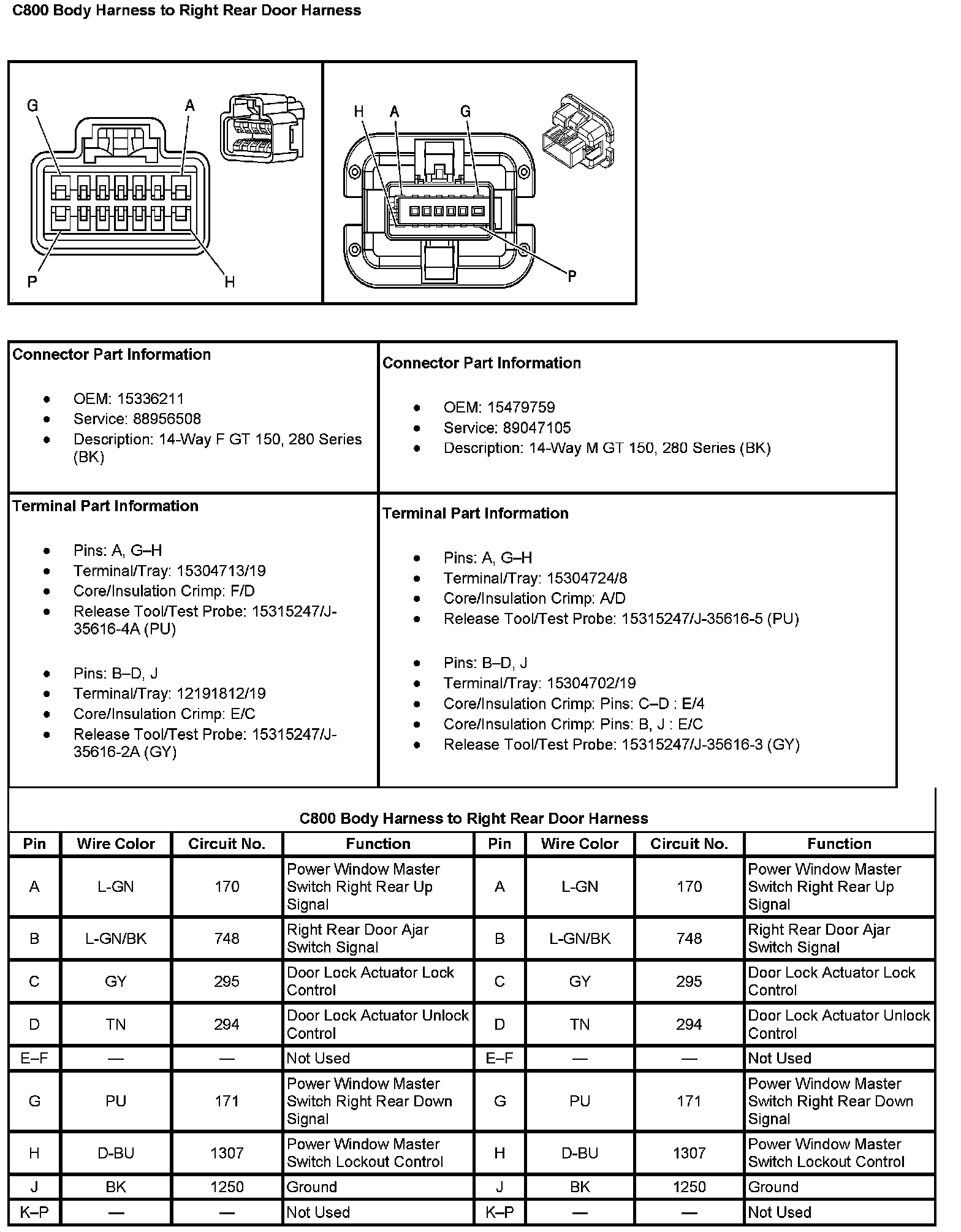 C800 Body Harness To Left Rear Door Harness (Pin A To P):