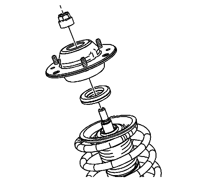 7. Remove the upper strut mount assembly and mount bearing. Inspect for damage and replace as necessary.