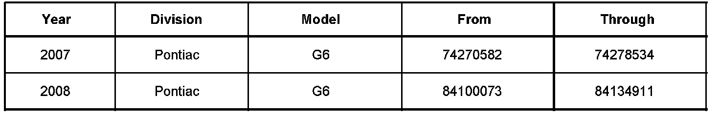 Involved are certain 2007-2008 model year Pontiac G6 convertible vehicles built within the VIN breakpoints shown.