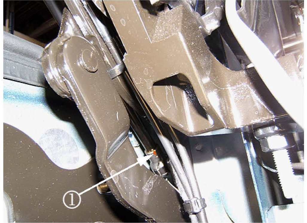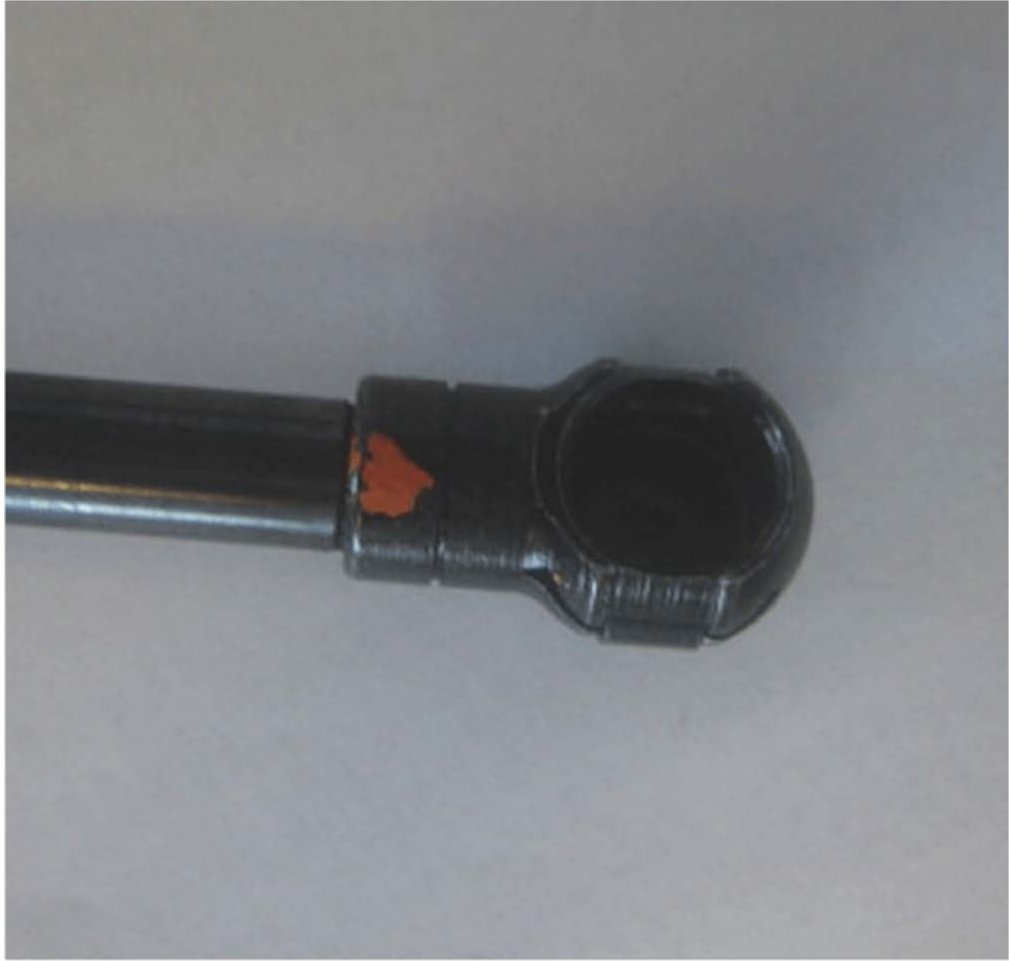 Inspect the rear compartment lid strut (gas tube) on both sides for a white or orange colored dot (1).