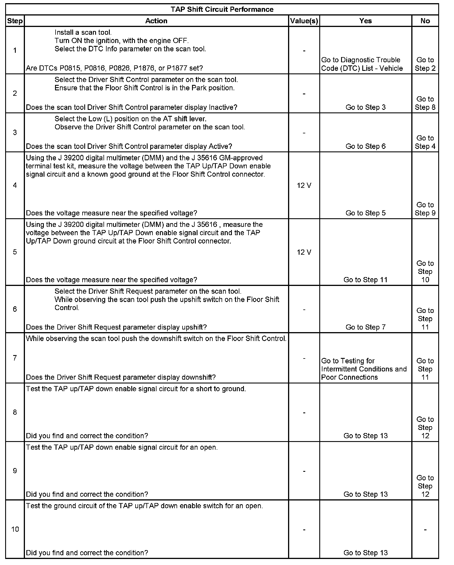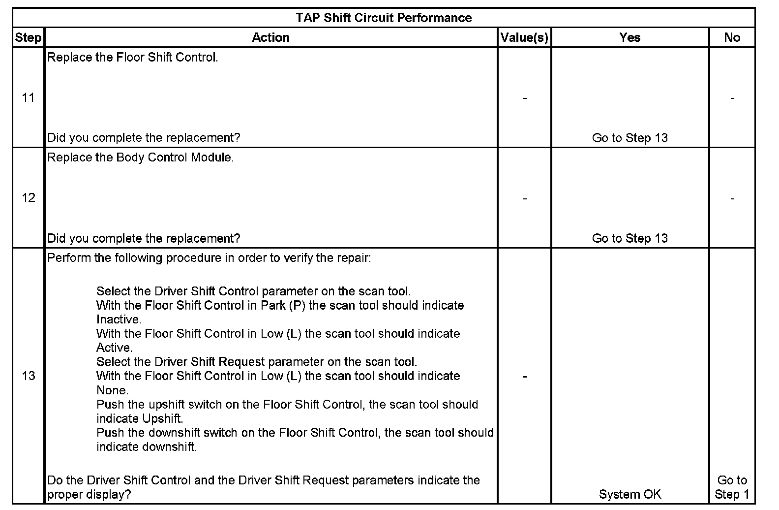 The transmission adaptive pressure (TAP) Shift system allows the driver to manually shift gears by using the TAP Shift switches located on the Automatic Transmission shift lever. Pushing the upshift button will command an upshift and pushing the downshift switch will command a downshift. The TAP Shift system is activated when the gear selector is in the Low (L) position and is deactivated in all other positions.