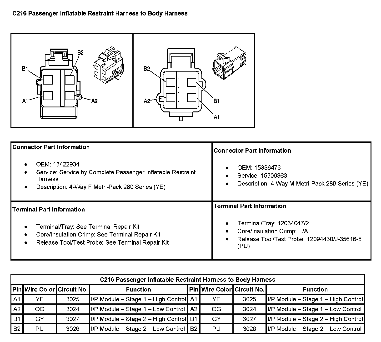 C216 Passenger Inflatable Restraint Harness To Body Harness (pin A1 To B2):