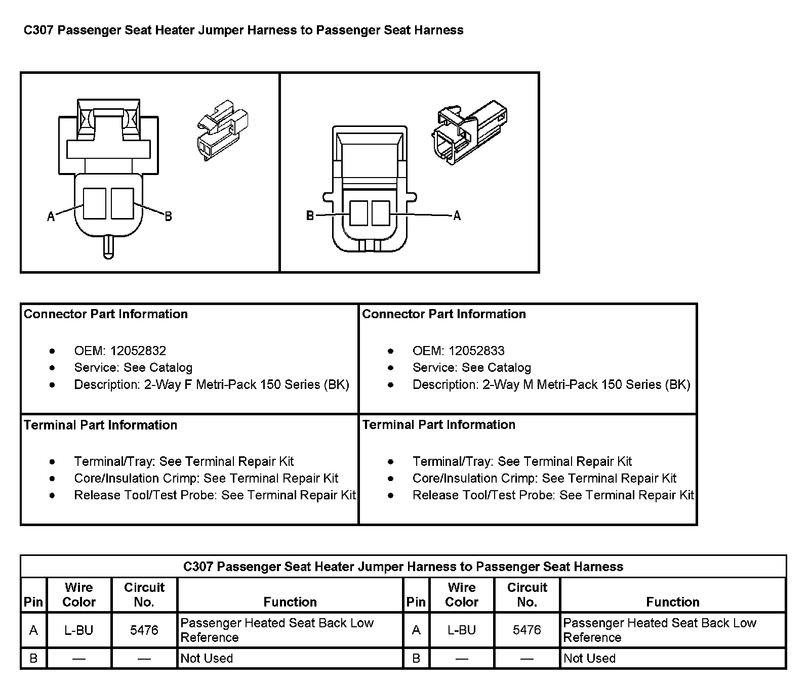 C307 Passenger Seat Heater Jumper Harness To Passenger Seat Harness (pin A To B):