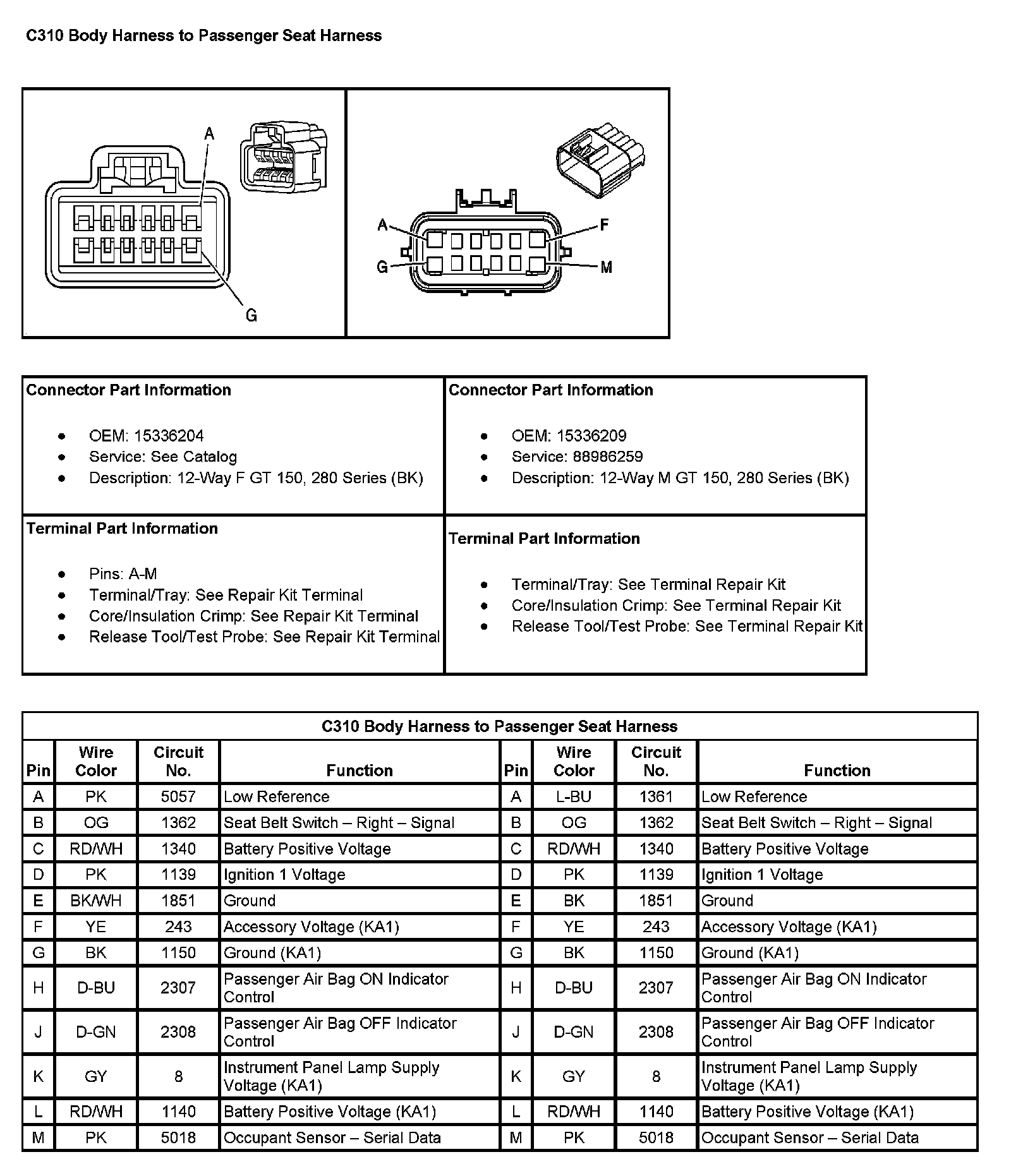 C310 Body Harness To Passenger Seat Harness (Pin A To M):