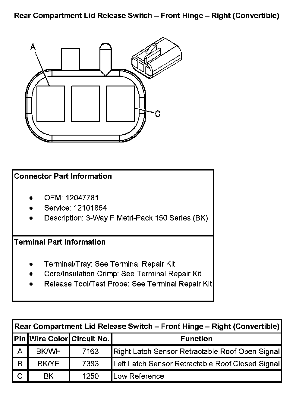 Rear Compartment Lid Release Switch - Front Hinge - Right (Convertible)