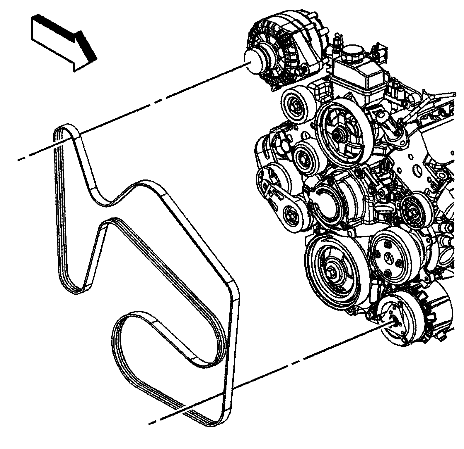 3. Route and install the drive belt, if equipped with hydraulic power steering.